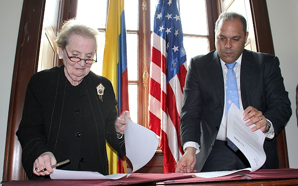 El Congreso de la República, en cabeza del presidente José David Name y el Instituto Nacional Demócrata, representado por la ex secretaria de Estado de los Estados Unidos Madeleine Albright acordaron firmar en acto protocolario desarrollado en el Salón de la Constitución del Capitolio Nacional, el Marco de Cooperación Interinstitucional para promover las actividades dentro del programa Transparencia Legislativa Colombiana.