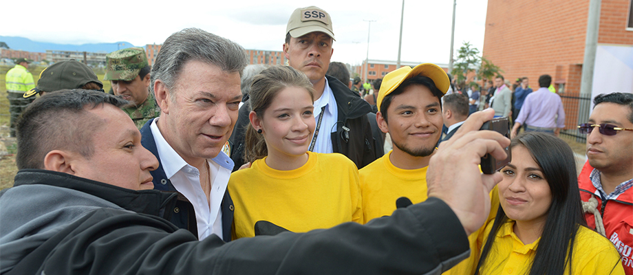 Habitantes de Bosa no perdieron la ocasión de fotografiarse con el Presidente