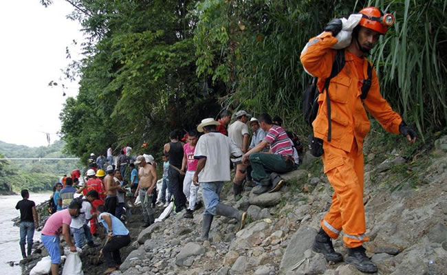 Según el presidente Santos, las filtraciones del río Cauca al yacimiento han complicado las labores de los equipos de emergencia, sin embargo, explicó que ya se ha extraído el agua suficiente como para entrar al socavón y recuperar los cadáveres.