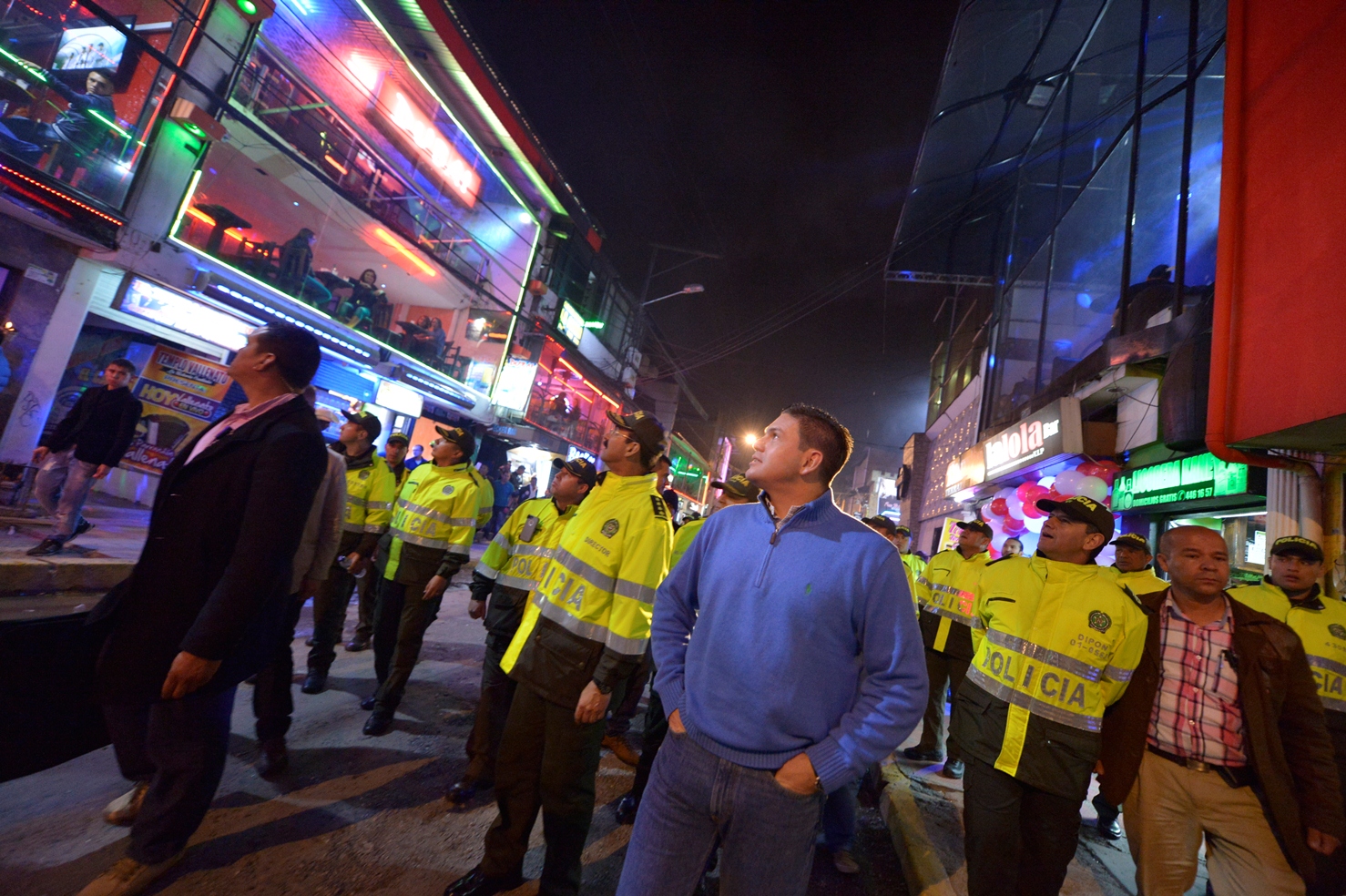 El Ministro empezó su recorrido nocturno en el sector de la avenida Primero de Mayo conocido como ‘Cuadra Alegre’; allí entró a varios establecimientos y habló con la comunidad y los empresarios de los sitios nocturnos, para conocer de primera mano sus quejas y planteamientos de seguridad.