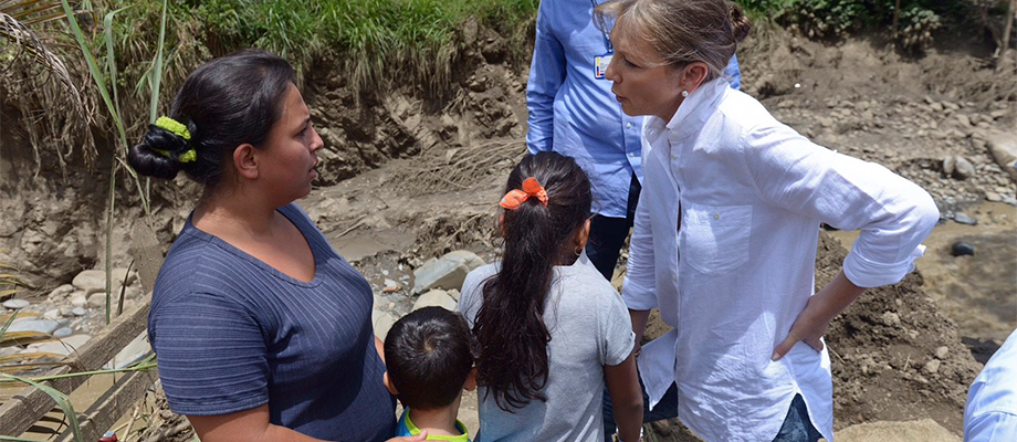 Además de la ayuda humanitaria, la señora María Clemencia expresó sus condolencias y solidaridad para con los familiares de las personas fallecidas y desaparecidas, en especial de los niños.