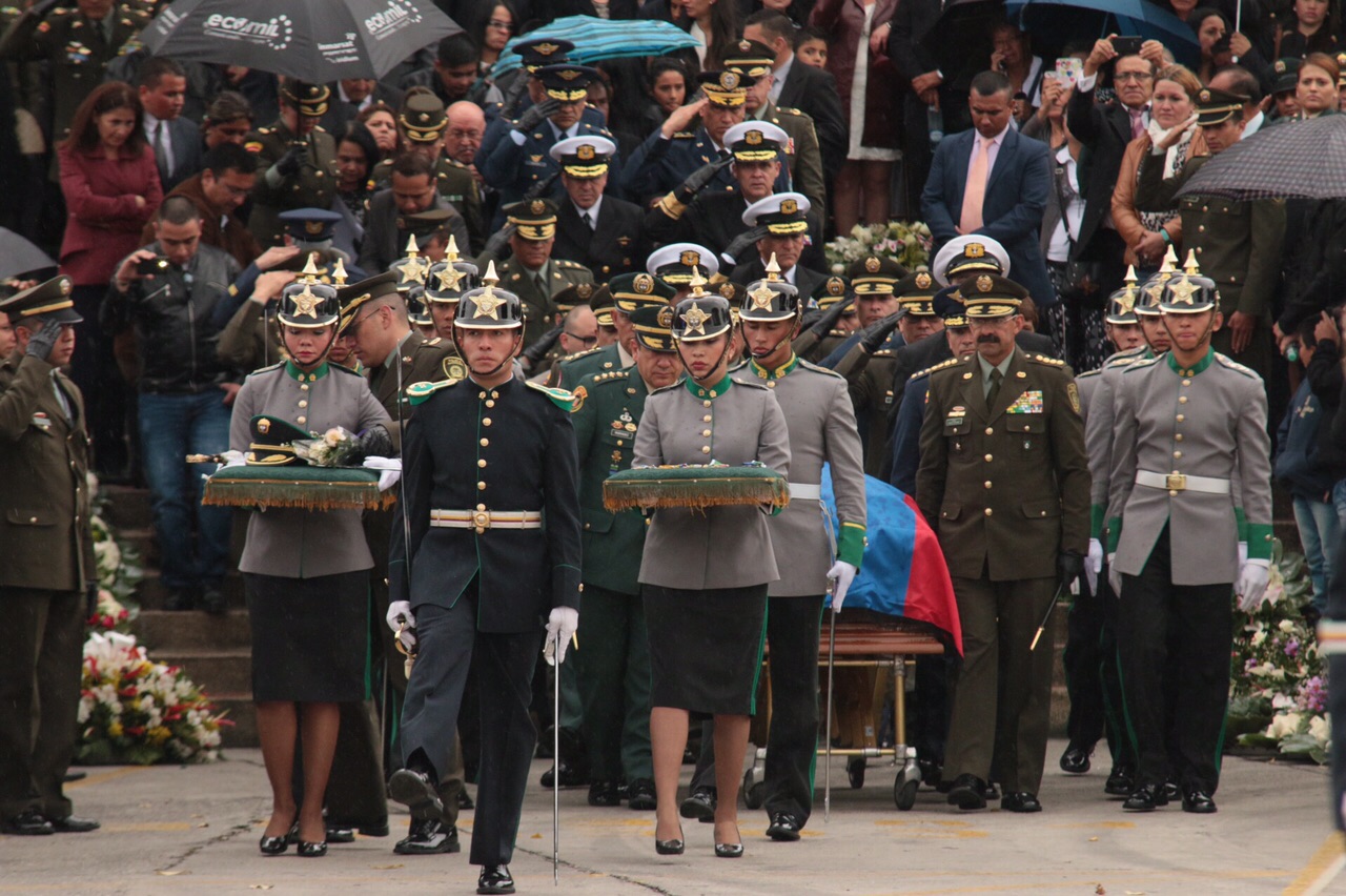 La familia del policía fallecido recibió -en un momento emotivo de la ceremonia- una bandera de Colombia de manos del director de la Policía Nacional, Rodolfo Palomino.
