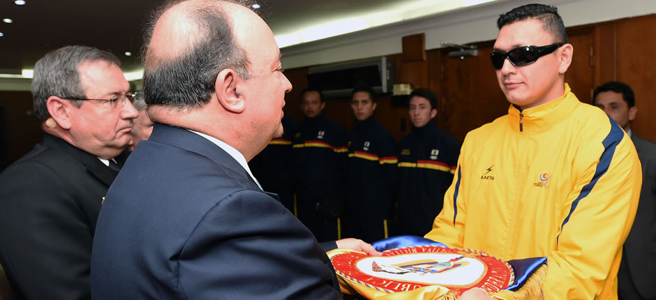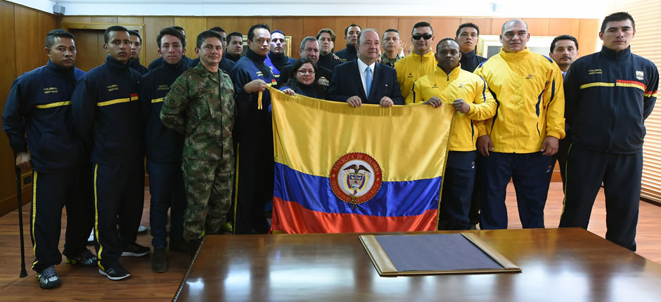 El ministro de Defensa, Luis Carlos Villegas, entregó el pabellón nacional a la delegación de las Fuerzas Armadas que representará al país en los juegos Parapanamericanos, que se realizarán del 7 al 14 de agosto en Toronto (Canadá).