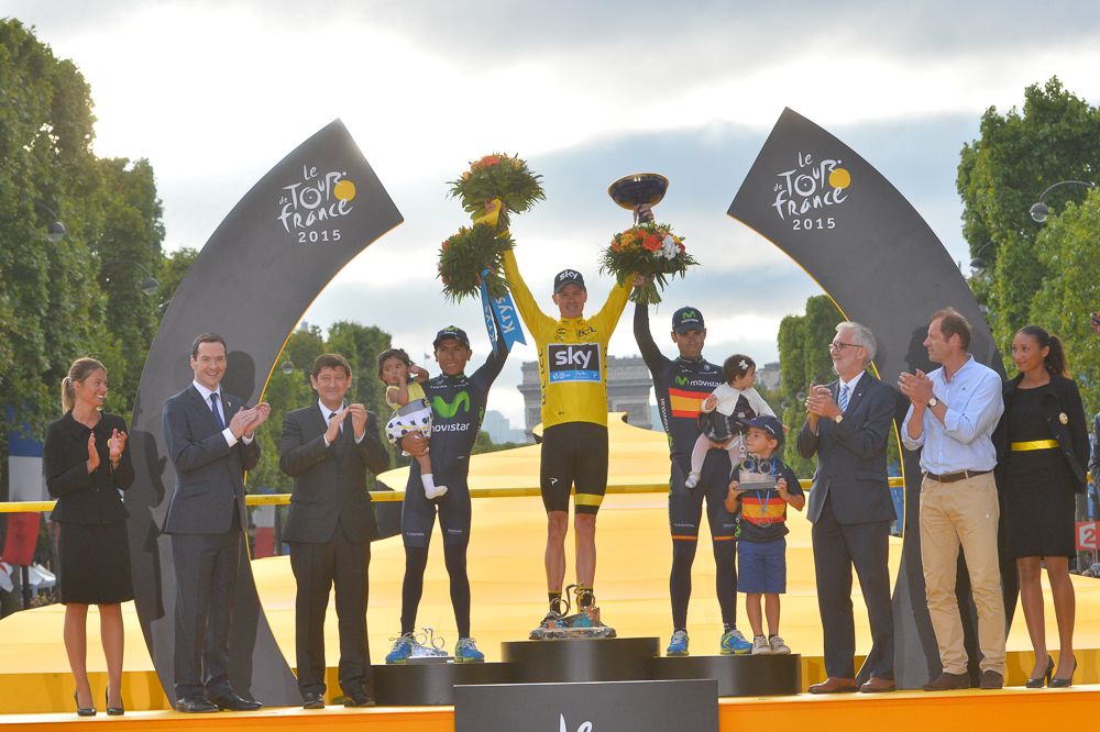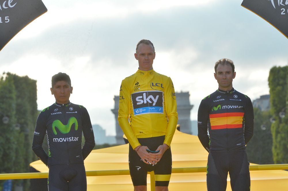 En el podio parisino, Froome subirá a lo más alto escoltado por el colombiano Nairo Quintana y el español Alejandro Valverde (Movistar, segundo y tercero, respectivamente.