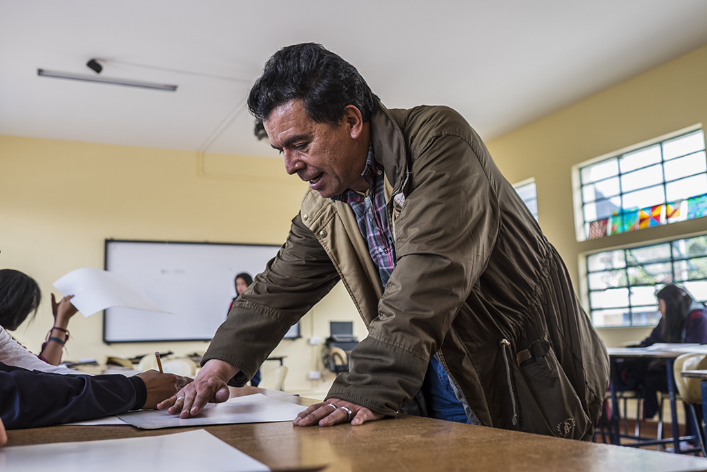 “Mis alumnos me han cambiado mucho. Antes era muy exigente, muy estricto, ahora soy flexible, soy como el amigo de ellos. Los corrijo pero no desde la normatividad sino desde la fuerza de la palabra y la comprensión, y, por supuesto, desde el arte que siempre lo llevará a uno a descubrir nuevos caminos”, concluye el profe Carlos con una sonrisa en los labios mientras saluda al profe Ómar, su colega y compañero de aventuras, que llega para saludarlo.