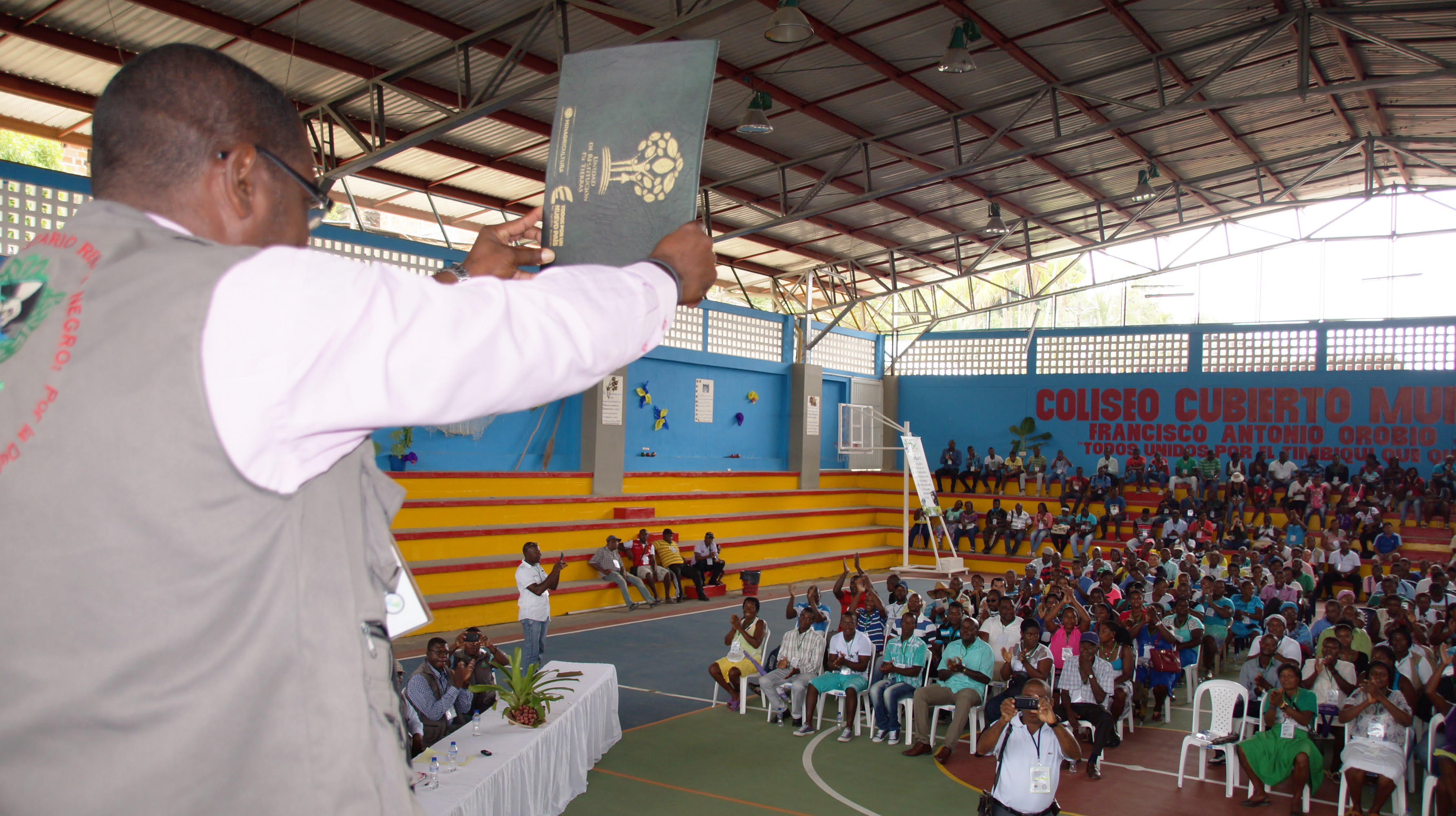 Timbiquí (Cauca),, 18 de Agosto_ RAM_ Con la presencia de la comunidad beneficiada, autoridades locales y representantes de entidades del Estado que realizan un trabajo permanente a favor de las víctimas del conflicto armado, se llevó a cabo la entrega material de la sentencia al Consejo Comunitario Renacer Negro, con la cual se protege sus derechos territoriales.