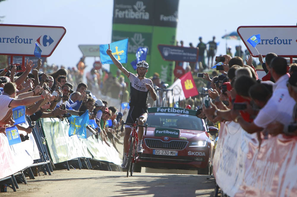 Ermita del Alba-Quirós, 07 de Septiembre_ RAM_ El luxemburgués Frank Schleck (Trek) se impuso en solitario en la decimosexta etapa de la Vuelta disputada entre Luarca y Ermita del Alba-Quirós, de 185 kilómetros, en la que el español Joaquim ‘Purito’ Rodríguez se puso de líder por un segundo ante el italiano Fabio Aru (Astana).