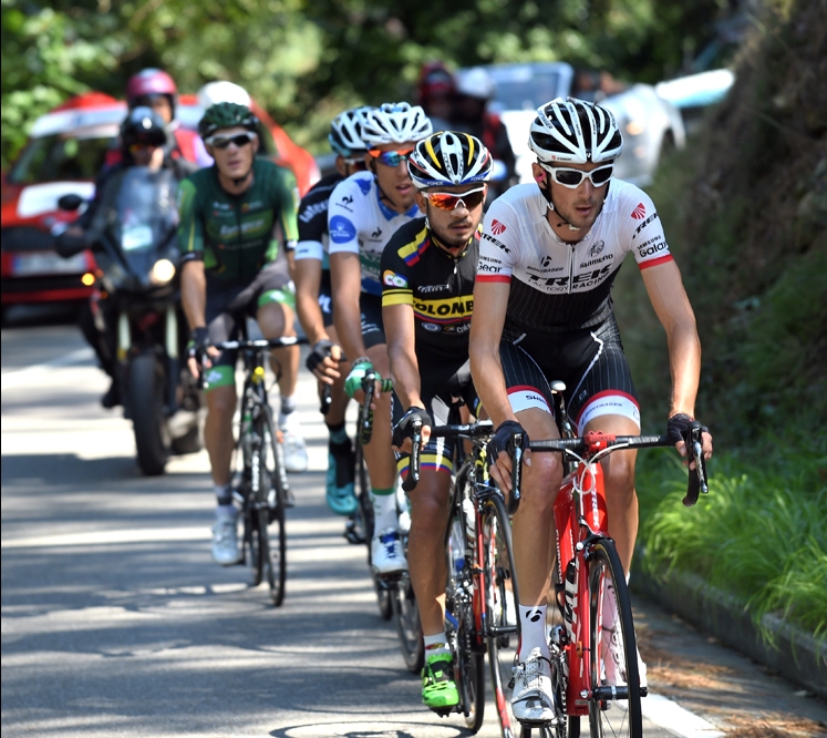 Escaladores, Purito y Aru, contra el contrarrelojista, Dumoulin. Hubo escapada de 10 con nombres importantes, como el francés Rolland (Europcar), el colombiano Torres (Colombia), los españoles Verona, (Etixx) y Fraile (Caja Rural), Schleck (Trek), Bennett (LottoNL-Jumbo), Lemoine (Cofidis), Warbasse (IAM), Moser (Cannondale) y Grmay (Lampre).