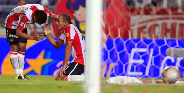 Precisamente desde la mitad del campo y con una defensa del DIM adelantada, a falta de dos minutos para el descanso, Ortega sirvió un balón en largo que fue bien controlado por Pérez con el pecho y con un perfil cambiado castigó de pierna zurda por el poste del portero de David González.