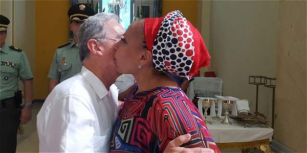 Uribe, quien estaba acompañado de la matrona guajira Francisca Sierra, le lanzó un piropo a Córdoba, al decirle “estas bonita, estas como quinceañera”.