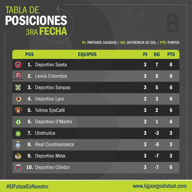 Tabla de Posiciones Tercera Fecha -Grupo B