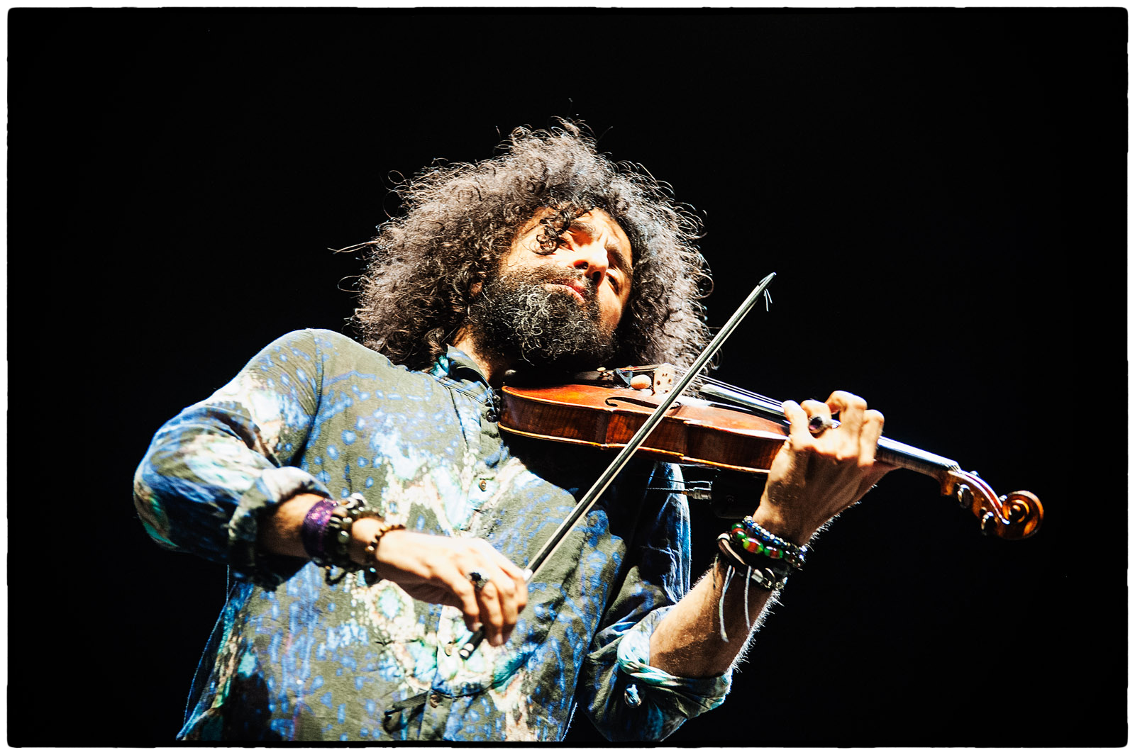 Como si estuviera conectado a una planta de energía centrífuga, el revolucionario y excéntrico violinista libanés, de ascendencia armenia, nacionalizado en España (donde vive hace quince años), desencadena con su vigor y su instrumento una potencia arrolladora que transmite al público, y que se hace visible en su desparpajado look: su alborotada melena rizada, decorado altisonante de su cerebro magnífico.