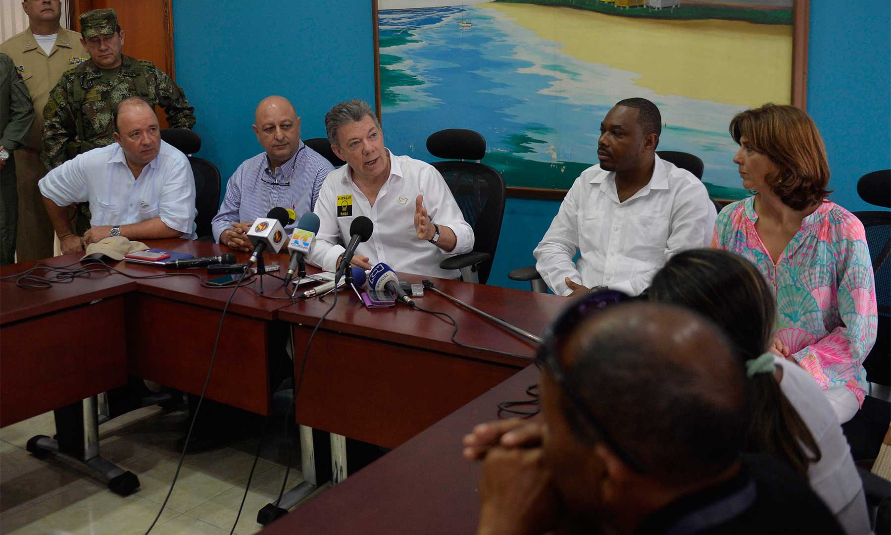 “La soberanía la defendemos hasta la muerte y hasta el último centímetro”, afirmó el Presidente Juan Manuel Santos a su llegada a San Andrés Islas, donde se reunió con autoridades civiles y líderes de la comunidad.