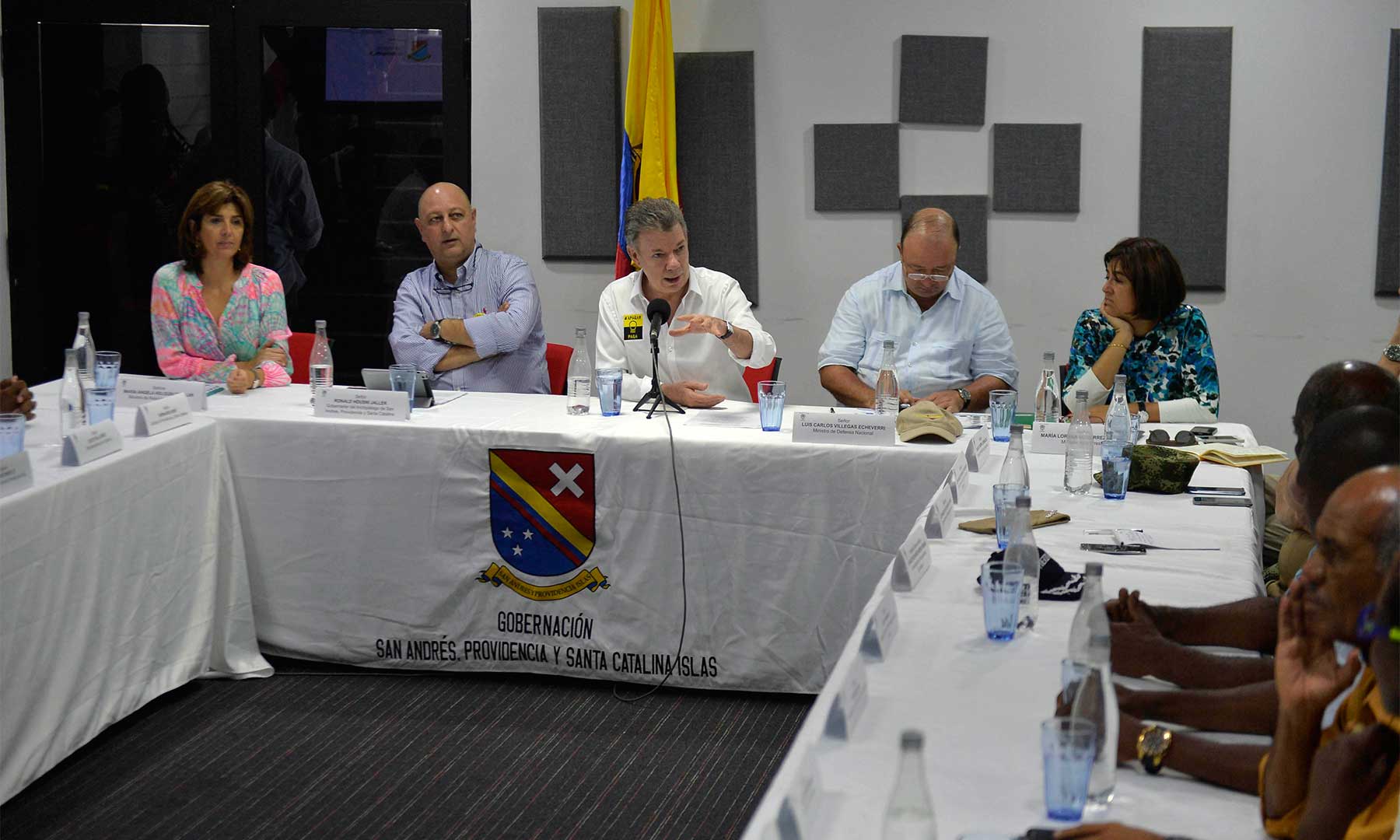 Las recientes decisiones de la Corte Internacional de Justicia es uno de los temas que se tratan en la reunión que lidera el Presidente Santos y varios de sus Ministros con autoridades civiles y líderes raizales en San Andrés Islas.