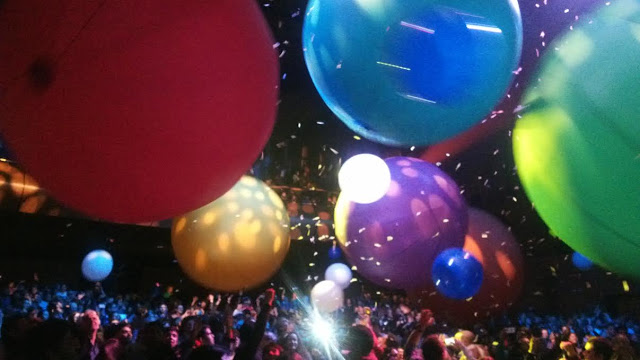El Teatro ‘Jorge Eliécer Gaitán’, convertido en una alucinante fiesta de balones multicolores. Foto: La Pluma & La Herida
