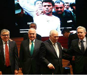 Muy pocos han logrado reunir a estos cuatro expresidentes de la República de Colombia, César Gaviria, Andrés Pastrana, Belisario Betancur y Álvaro Uribe, pues Lilian Tintori y su esposo, el preso político en Venezuela Leopoldo López, lo consiguieron, en el lanzamiento del libro “Preso pero Libre”, escrito por el líder opositor desde la cárcel.