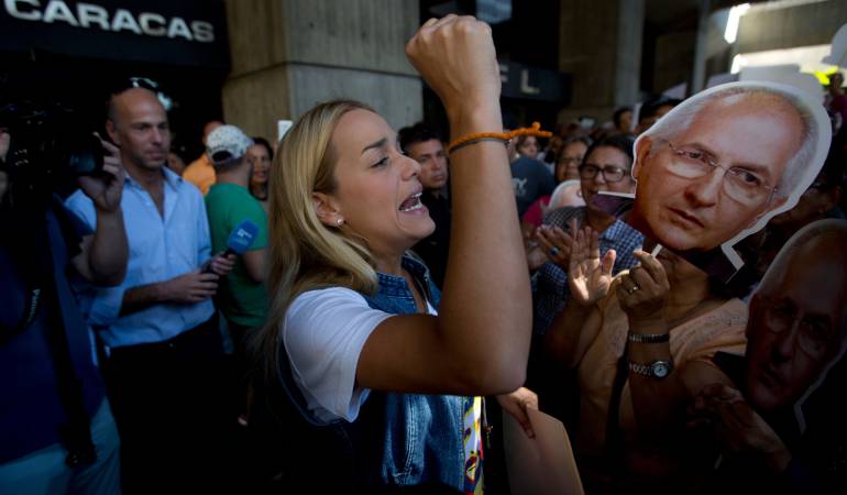 La esposa del opositor venezolano Leopoldo López, quien se encuentra de visita en Bogotá, hizo un llamado al presidente Juan Manuel Santos para que se pronuncie sobre la crisis en su país.