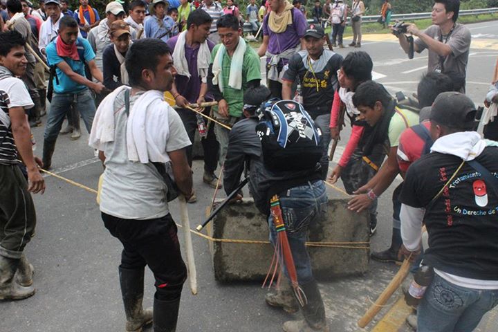 A la altura de la carretera Cabal Pombo que comunica a Cali y Buga, permanecen cerca de unos mil indígenas del resguardo Nasa Embera chamí, Nasa Kiwe, quienes en este momento bloquean la vía.