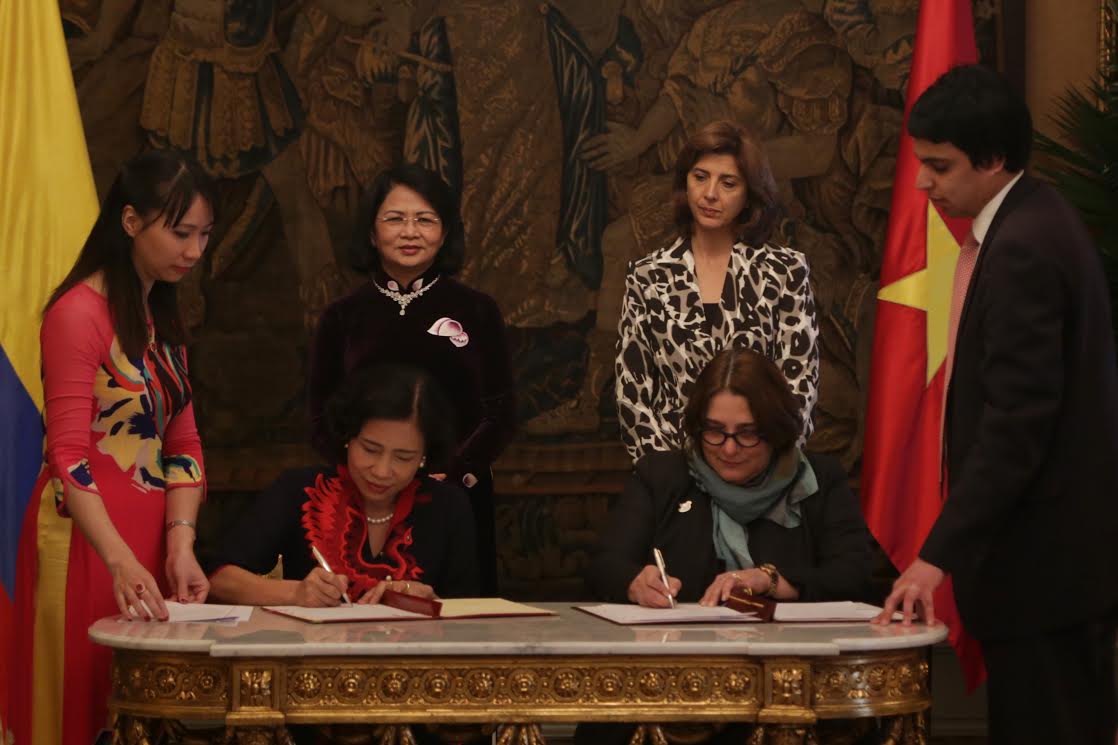 La Canciller María Ángela Holguín y la Vicepresidenta de la República Socialista de Vietnam, Dang Thi Ngoc Thinh, coincidieron en la importancia del trabajo que hacen ambas naciones, ayudará a fortalecer las relaciones bilaterales; que este 2016 cumple 37 años.