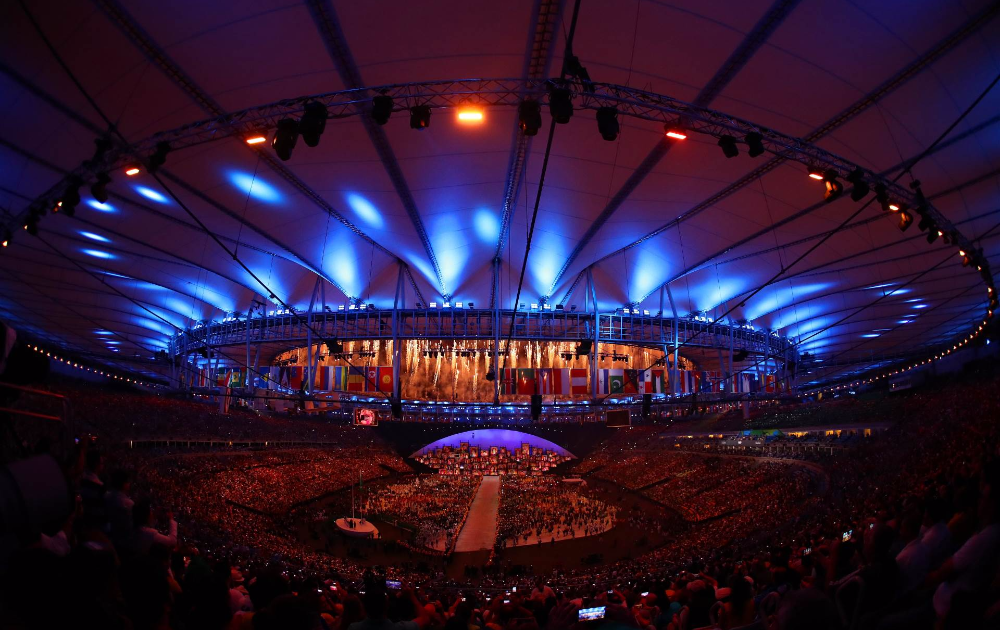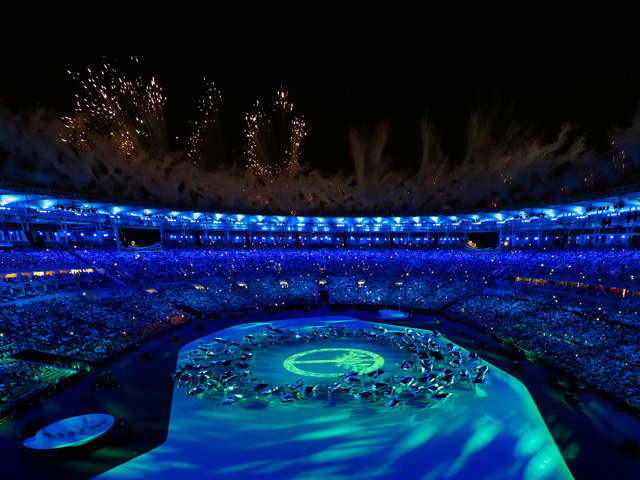El mítico estadio Maracaná fue testigo del espectáculo montado magistralmente para que Rio 2016 le dijera presente al mundo con una espectacular y colorida Ceremonia Inaugural que arrancó con la muestra de una vista aérea de la Ciudad Maravillosa. Iluminado y exultante, el Cristo Redentor, vestido para la ocasión, dio la ilusión óptica de estar observando las playas y los morros de la ciudad mientras “Aquele Abraco” del popular Gilberto Gil fue interpretado por Luiz Melodia antes de una lluvia de fuegos artificiales que iluminaron el estadio.
