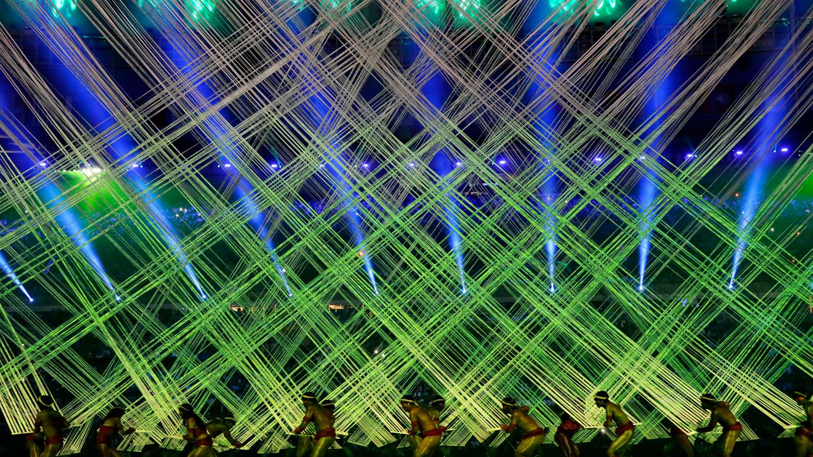 El show musical se inició con la presencia de cientos de bailarines junto a una colorida cortina de cintas y la proyección del mar, la selva y los bosques del extenso territorio de Brasil que marcó el nacimiento de la vida.