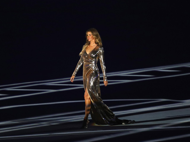 El estadio estalló en un grito cuando la modelo brasileña Gisele Bundchen desfiló interpretando a “Garota da Ipanema” de Tom Jobin e interpretada por Paulinho da Viola.