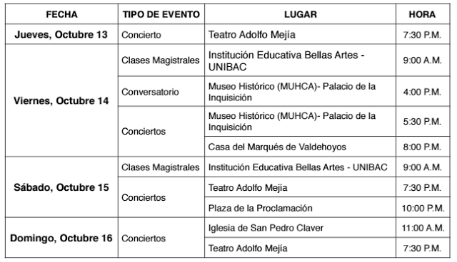 El Festival Internacional de Guitarra tendrá como escenarios el Teatro Adolfo Mejía, el Museo Histórico de Cartagena y la Plaza de La Proclamación. Toda la programación se puede consultar en www.festiguitarras.com