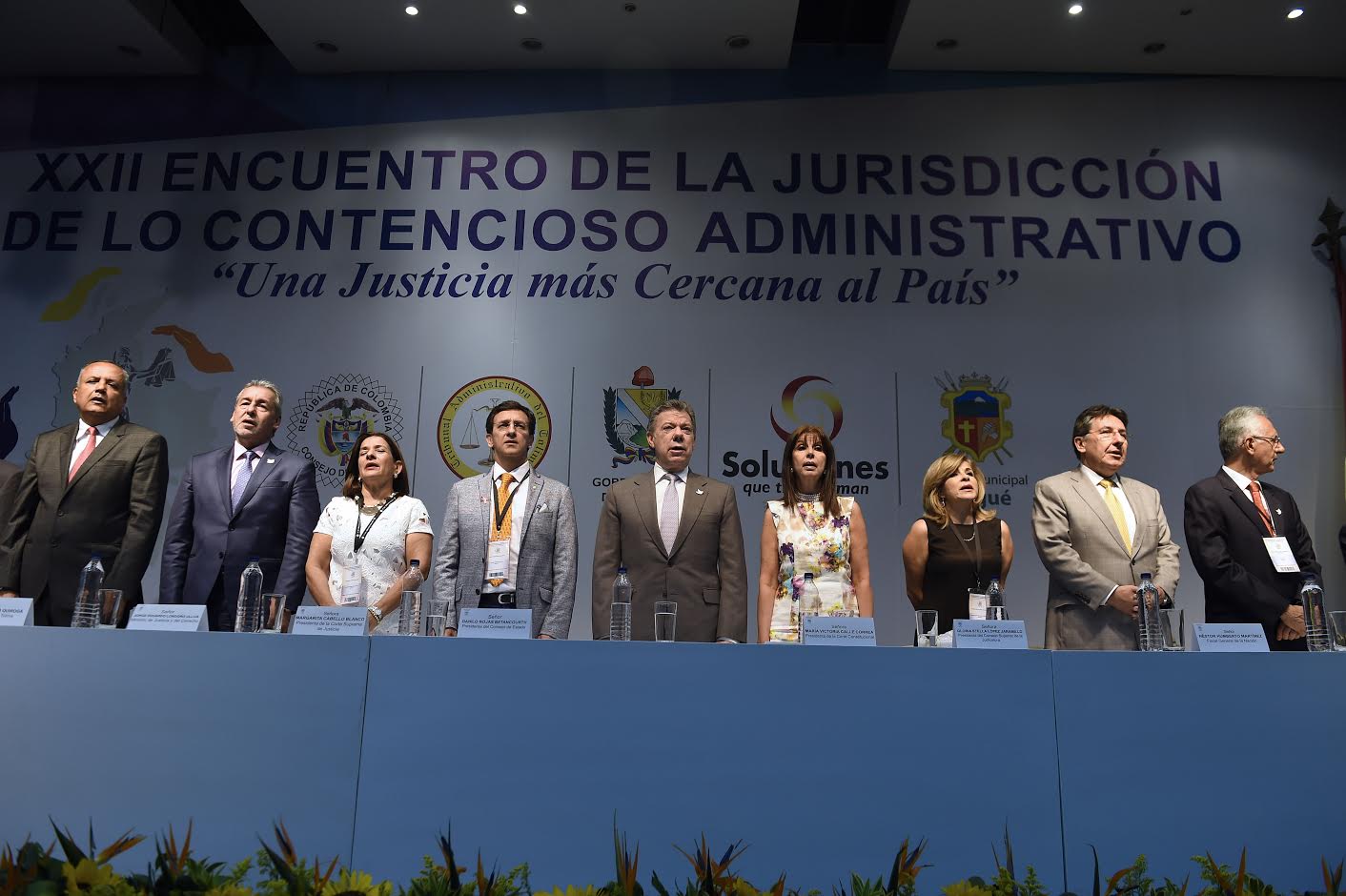 El Mandatario, quien este miércoles instaló en la capital del Tolima el XXII Encuentro de la Jurisdicción de lo Contencioso Administrativo, señaló que serán los mismos jueces guardianes de la constitucionalidad los que se encarguen de “controlar que las medidas e instituciones previstas para el cumplimiento del Acuerdo resulten conformes con el orden constitucional”.