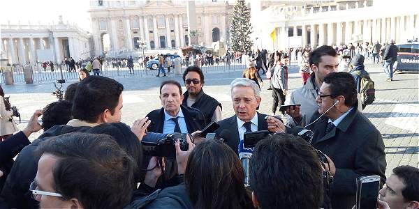 Ciudad del Vaticano, 16 de diciembre _ RAM_ Luego de la reunión con el papa Francisco y el presidente Juan Manuel Santos, el senador Álvaro Uribe agradeció al sumo pontífice su acogida, pero no mostró ningún cambio en su posición frente a los acuerdos con las Farc.