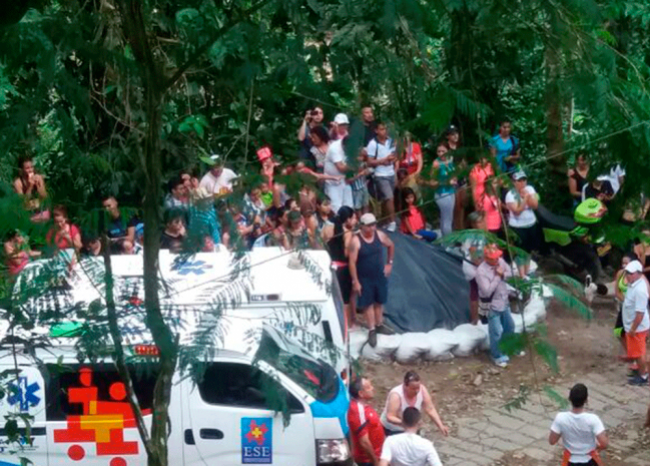 La emergencia es atendida por el Cuerpo de Bomberos y la Cruz Roja Colombiana, así como la Policía que impedía el paso de vehículos en la parte baja de la ciudad para que los cuerpos de socorro pudieran atenderla.