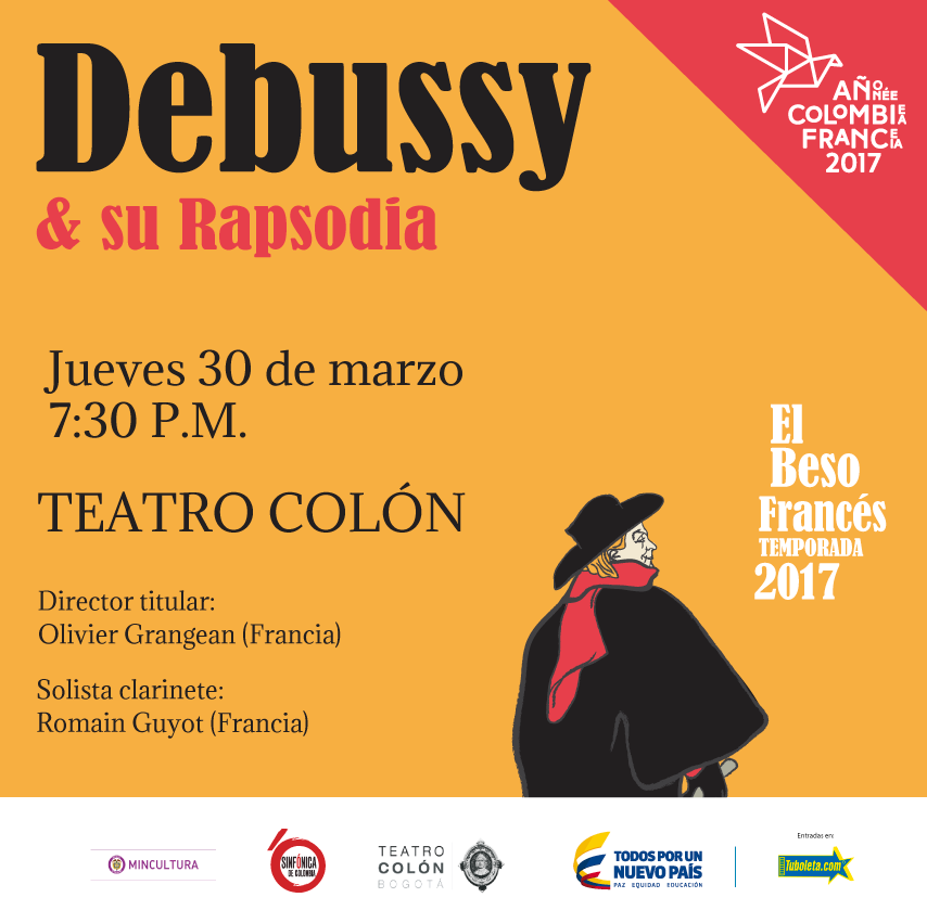 Gran plan para alejarse de la rutina, olvidarse de las preocupaciones y viajar a otra dimensión a través del arte musical, es sin duda, el concierto Debussy y su Rapsodia que presenta este jueves la Orquesta Sinfónica Nacional de Colombia, a las 7:30 p.m en Teatro Colón. Evento que hace parte de la programación del Año Colombia – Francia 2017.