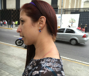 Cuando se encontraba transmitiendo en vivo, fue empujada, pateada y detenida por efectivos militares que buscaban contrarrestar la manifestación de estudiantes que se encontraban en la zona protestando por la decisión del máximo órgano de la justicia en contra del Parlamento.