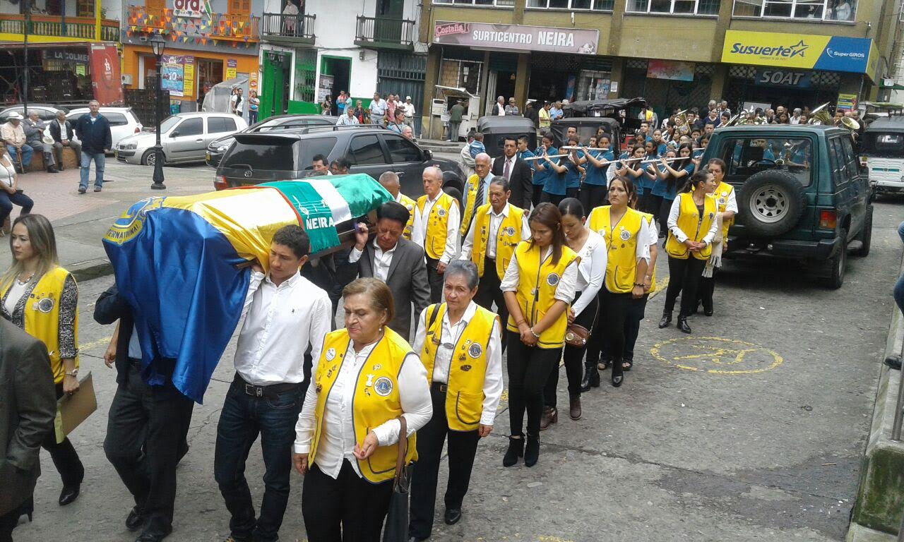 y acompañado por la banda sinfónica del instituto Neira de la cual fue su padrino, leones, sociedad de mejoras públicas, y un acompañamiento masivo de la comunidad fue conducido al templo parroquial donde se le ofreció la misa de despedida al hombre más cívico y querido que haya dado tierra alguna.