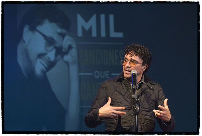 La presentación terminó con las historias de sus compañeros de viaje, quienes relataron cómo el tono de sus boleros ha cambiado en los últimos tiempos, consecuencia también del estado de ánimo optimista del cantautor y de su relación con la periodista Elisa Restrepo.