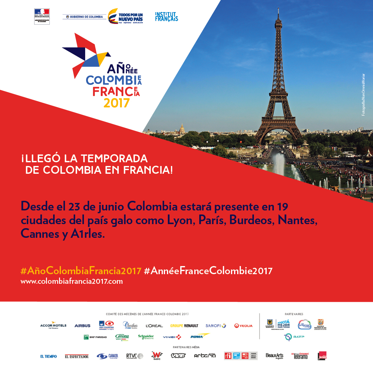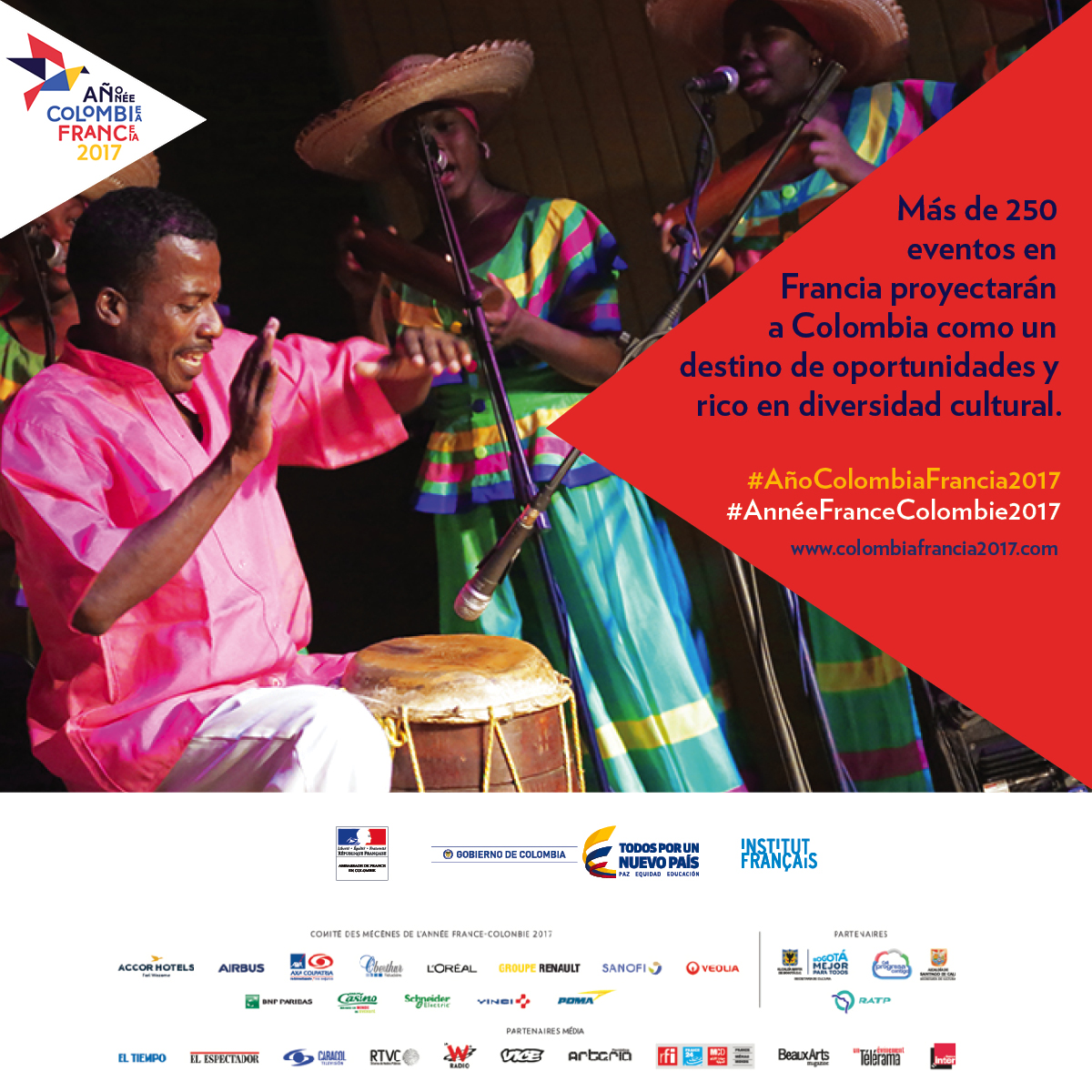Más de 250 eventos comprenderá la Temporada de Colombia en Francia, en el marco del Año Colombia-Francia 2017, el programa de cooperación más ambicioso acordado entre los dos países. A partir del 23 de junio, y hasta finalizar el año, se llevará a cabo en 19 ciudades francesas.