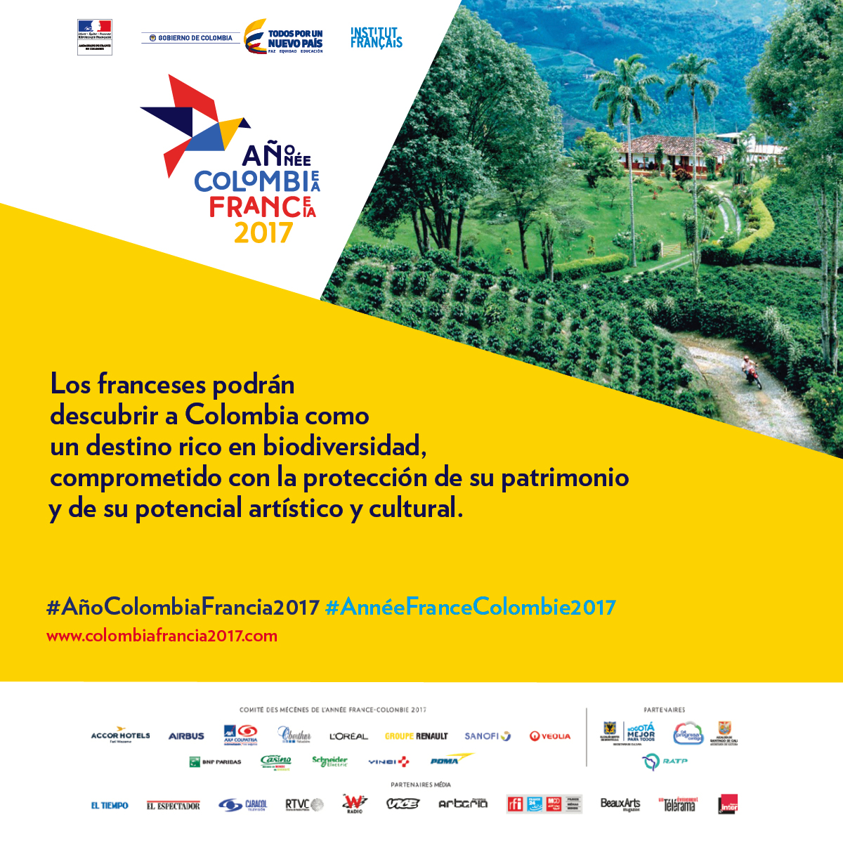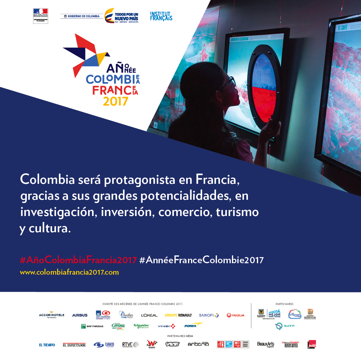 “Consideramos que Francia escogió a Colombia para este intercambio, dados los cambios favorables en el contexto del país, sobre todo, frente a la posibilidad de terminar el conflicto armado que enfrentó por más de cinco décadas. Es el momento para que tanto franceses como europeos (en general) conozcan los nuevos vientos que hoy vivimos”, precisó Mariana Garcés, Ministra de Cultura y presidenta técnica de la Comisión Intersectorial, a cargo de la organización del Año Colombia-Francia 2017, en el país.