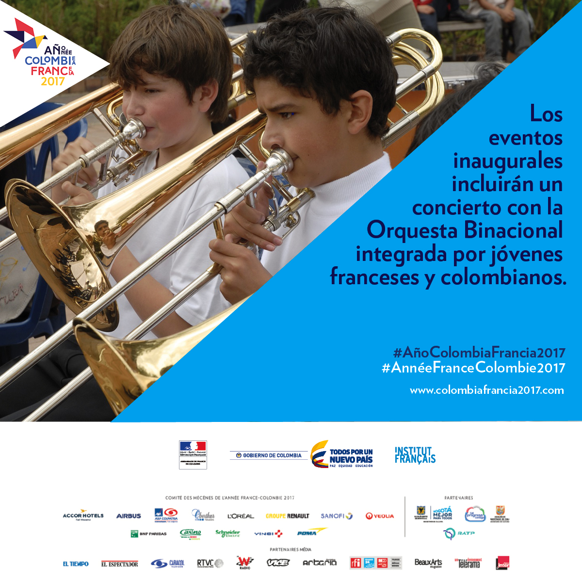 Los actos inaugurales incluyen un concierto con la Orquesta Binacional integrada por jóvenes franceses y colombianos, un foro económico, la inauguración de la Plaza García Márquez y la entrega del Honoris Causa de La Sorbona al Presidente Juan Manuel Santos.