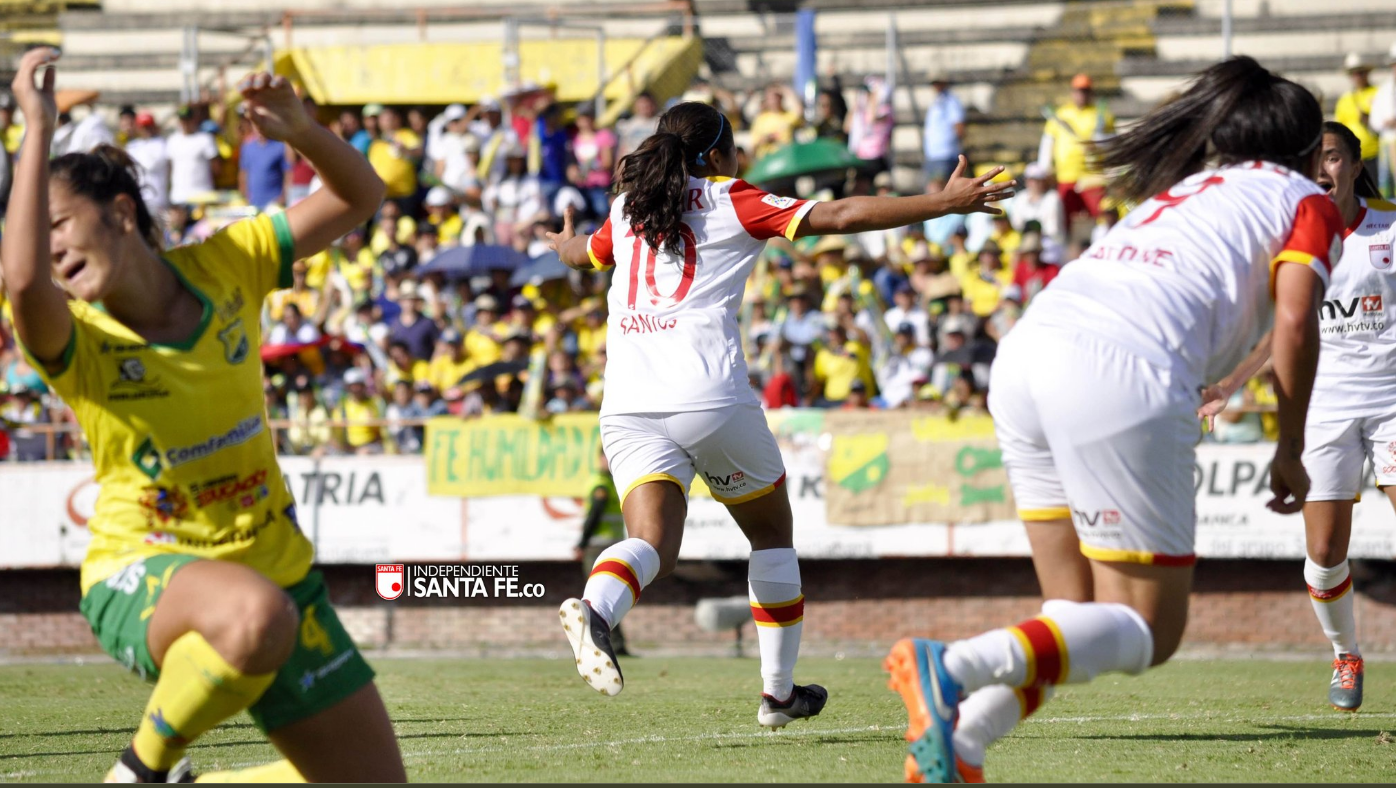 Neiva, 19 de junio_ RAM_ Con goles de Leicy Santos y Oriana Altuve, Independiente Santa Fe derrotó 2-1 a Atlético Huila, que se había ido en ventaja con tanto de Karla Torres, en el partido de ida de la final de la Liga Águila femenina.