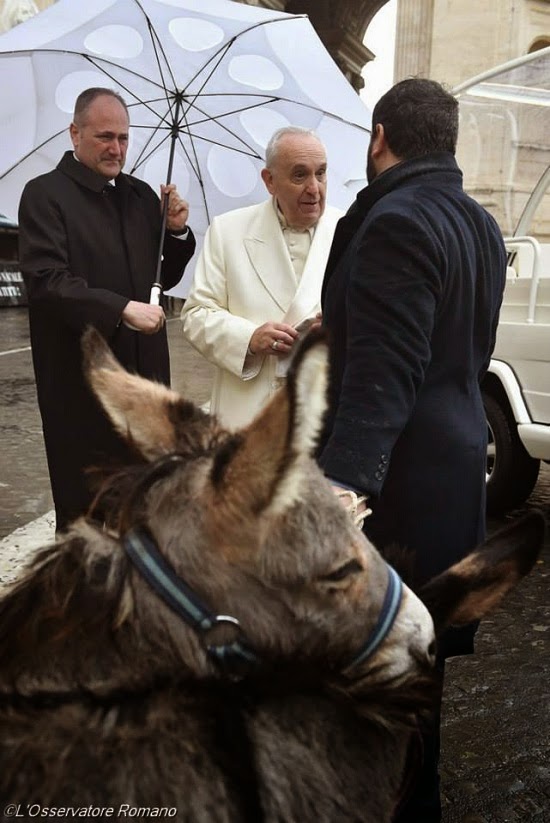 El 3 de diciembre del 2014 rebuznaron Thea y Noé, una pareja de asnos de la empresa Eurolactis que proporciona leche de burra al hospital “Bambino Gesú” para ayudar con la supervivencia de niños prematuramente. El Papa Francisco le causó risa el curioso detalle.