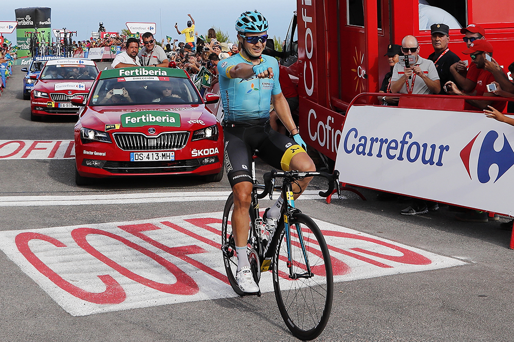 Ha sido en las primeras rampas de la subida situada en la localidad de Alcossebre que el kazajo ha dejado atrás a Haller y ha acabado imponiéndose en solitario en meta, logrando así ser el primer corredor de su país en lograr una victoria de etapa en La Vuelta desde que su actual director de equipo, Alexander Vinokourov, lograra tres etapas y la general final en 2006.