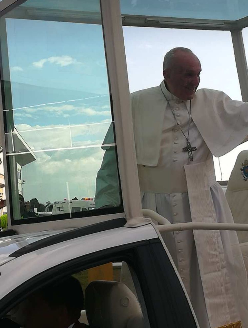 Sólo unos segundos bastaron para que muchas personas se fueran felices para sus casas. Miles de bogotanos con celulares en mano tomaban fotografías y otros querían un recuerdo más del obispo de Roma, que viajaba acompañado por el cardenal Rubén Salazar.