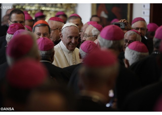 No soy el primer Papa que les habla en su casa. Dos de mis más grandes Predecesores han sido huéspedes aquí: el beato Pablo VI, que vino apenas concluyó el Concilio Vaticano II para animar la realización colegial del misterio de la Iglesia en América Latina; y san Juan Pablo II en su memorable visita apostólica de 1986. Las palabras de ambos son un recurso permanente, las indicaciones que delinearon y la maravillosa síntesis que ofrecieron sobre nuestro ministerio episcopal constituyen un patrimonio para custodiar. Quisiera que cuanto les diga sea recibido en continuidad con lo que ellos han enseñado.