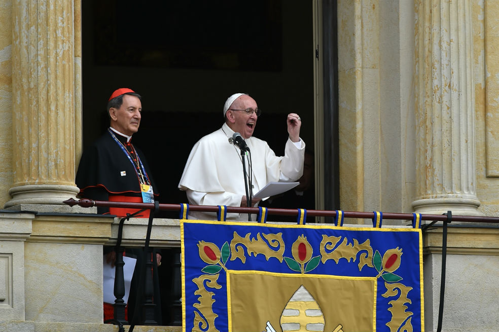El Papa Francisco, luego de saludar al presidente, de rezar las letanías ante la Virgen de Chiquinquirá en la Plaza de Bolívar, de firmar el libro de los personajes ilustres que han visitado la Catedral Primada, de un encuentro con los obispos colombianos.