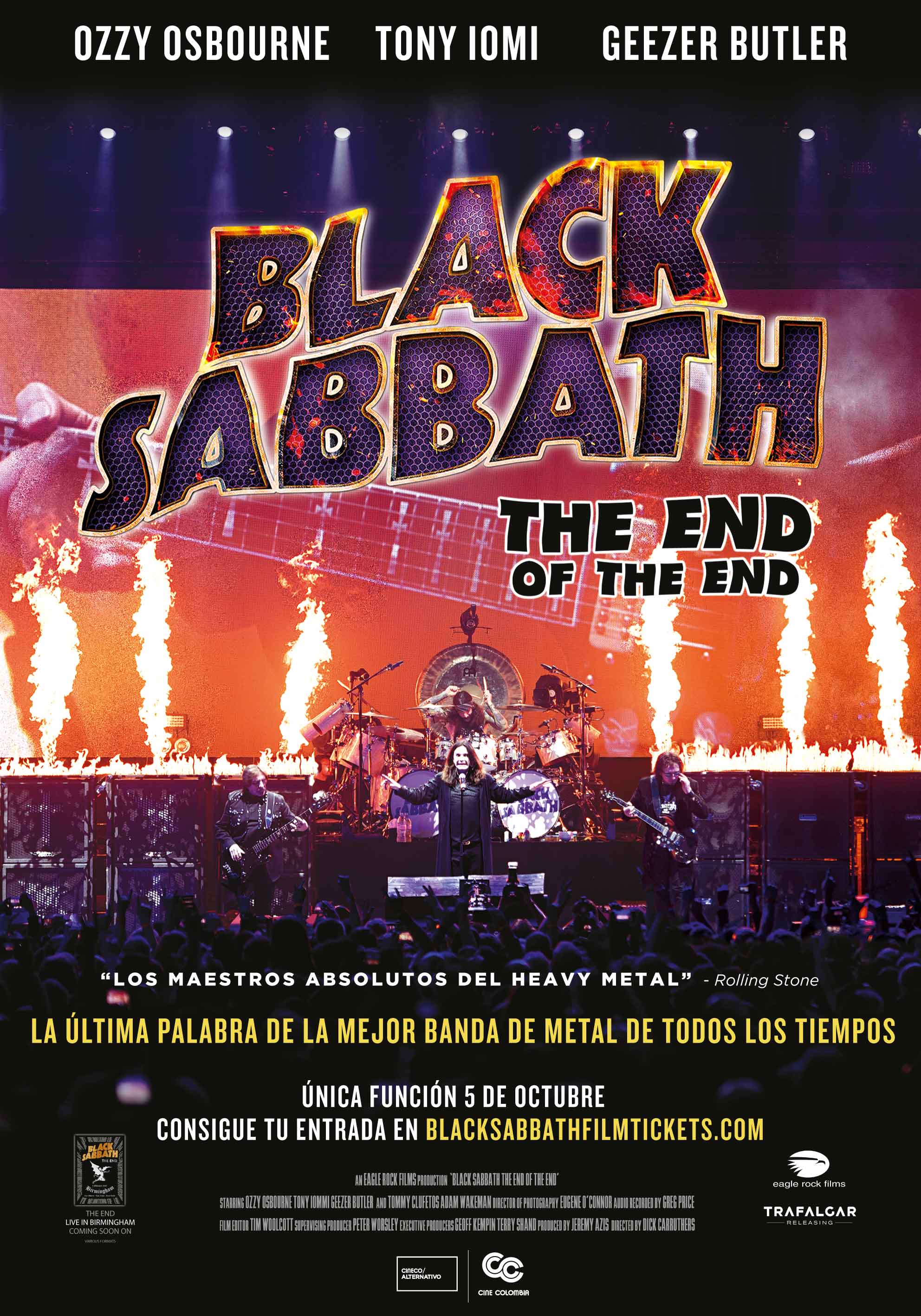 Black Sabbath: The end of The End revivirá las canciones que han logrado que esta banda sea legendaria y hará que sus fanáticos griten con la música que ha llevado a esta banda de Reino Unido a ser incluida en el Hall de la Fama del Rock and Roll. Este mes, sus míticos álbumes Paranoid (1970) Black Sabbath Vol. 4 (1972), Technical Ecstasy (1976) y Never Say Die! (1978), celebran su cumpleaños. El concierto que se proyectará en Bogotá, Medellín, Cali, Bucaramanga, Pereira, Armenia y Manizales, es el último espectáculo en vivo de la agrupación y llegará a los cines el 5 de octubre como única fecha. La boletería ya está disponible.