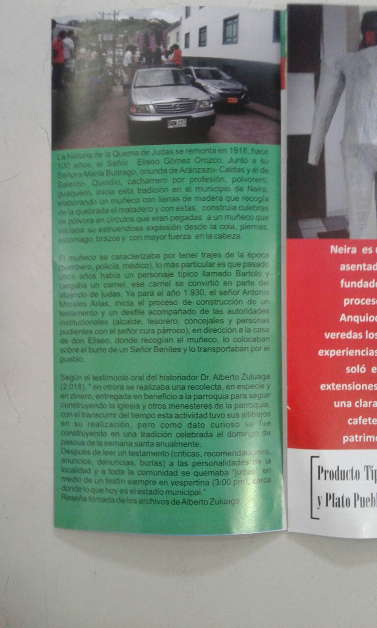 Para los neiranos quemar a Judas el domingo de resurrección representa quemar los rencores, las envidias, los males , las malas energías que llegan a nuestro pueblo, significa decirle Chao adiós a la maldad. Con la quema de Judas los neiranos le dan LA bienvenida a la paz y el amor que se tomará los corazones de todos los neiranos