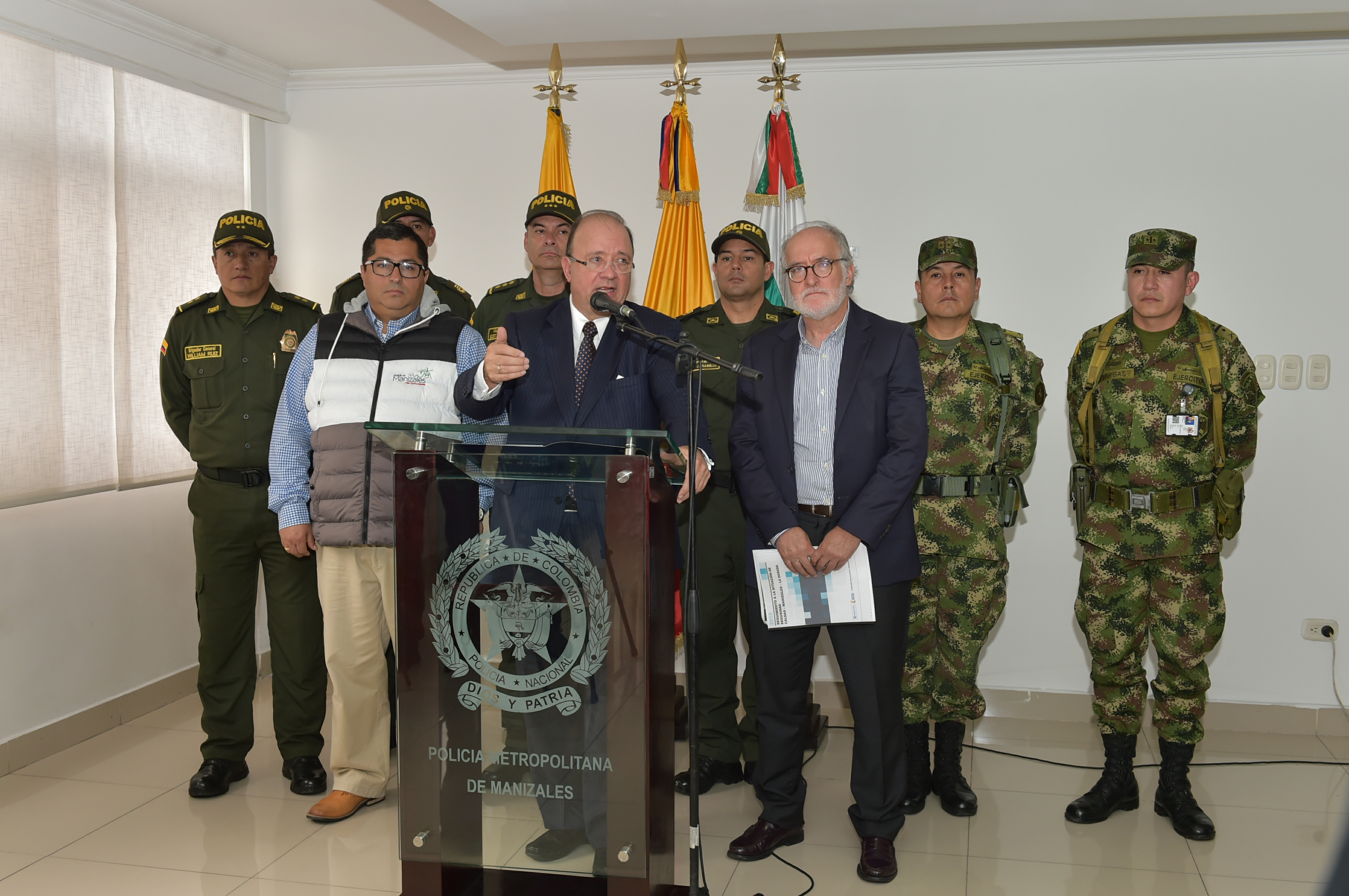 Rueda de prensa Ministro de Defensa reunión de seguridad en Manizales