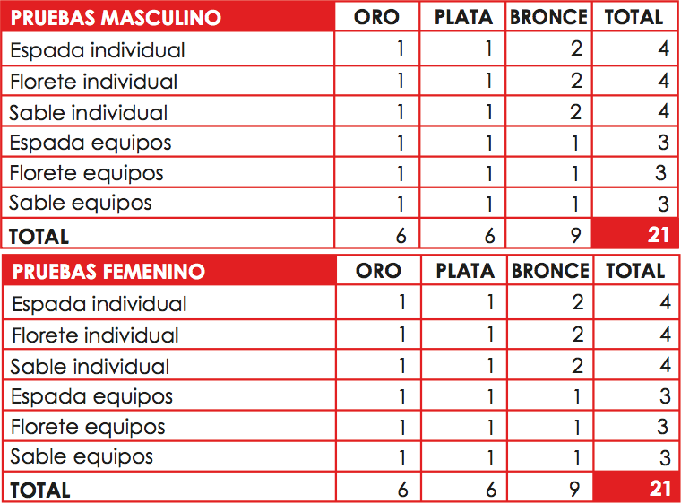 Para esta edición, la organización entregará 21 medallas, tanto en hombres como en mujeres.