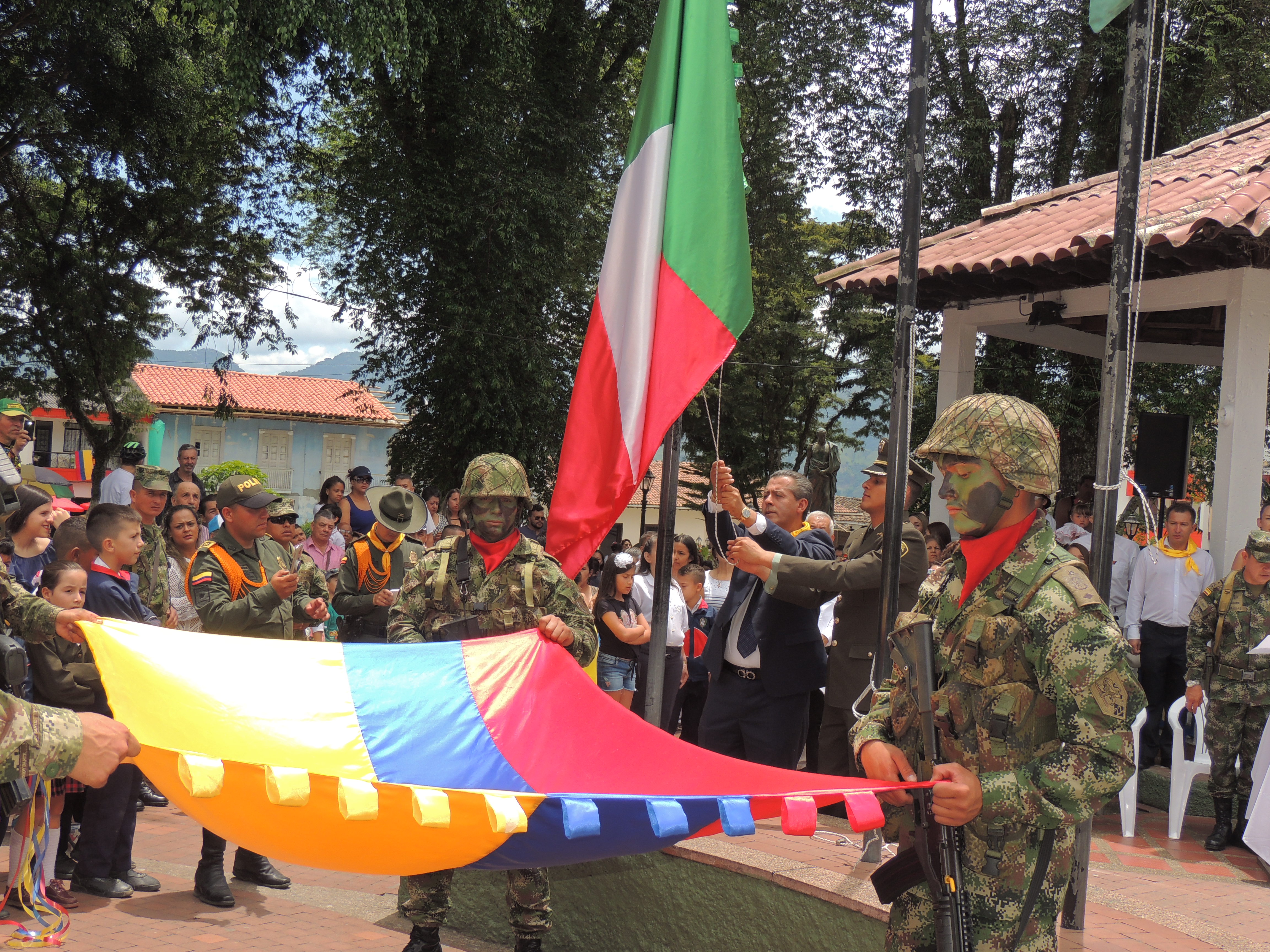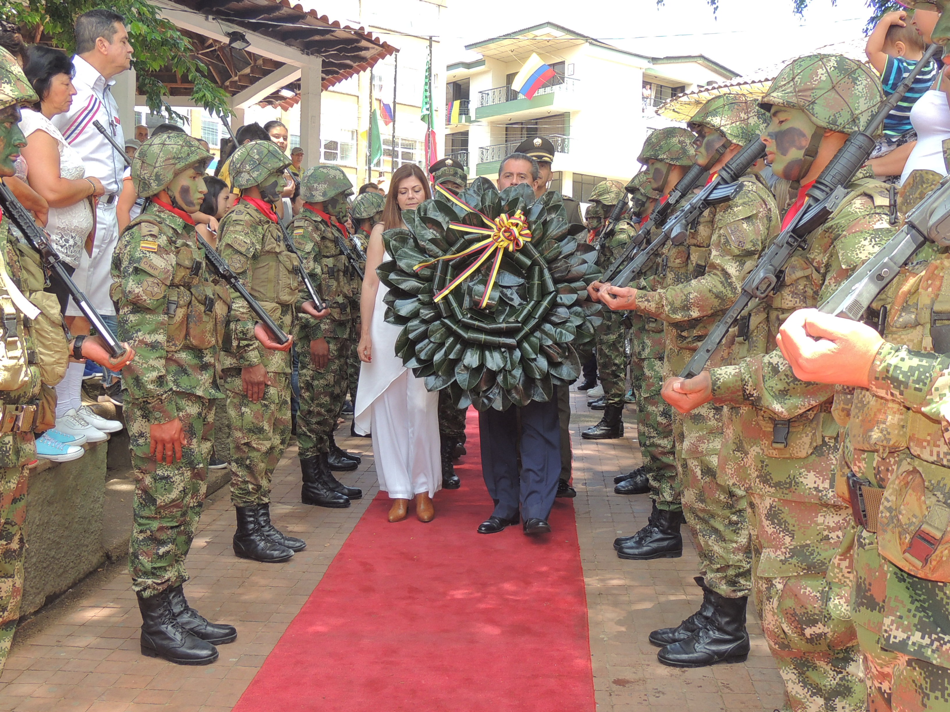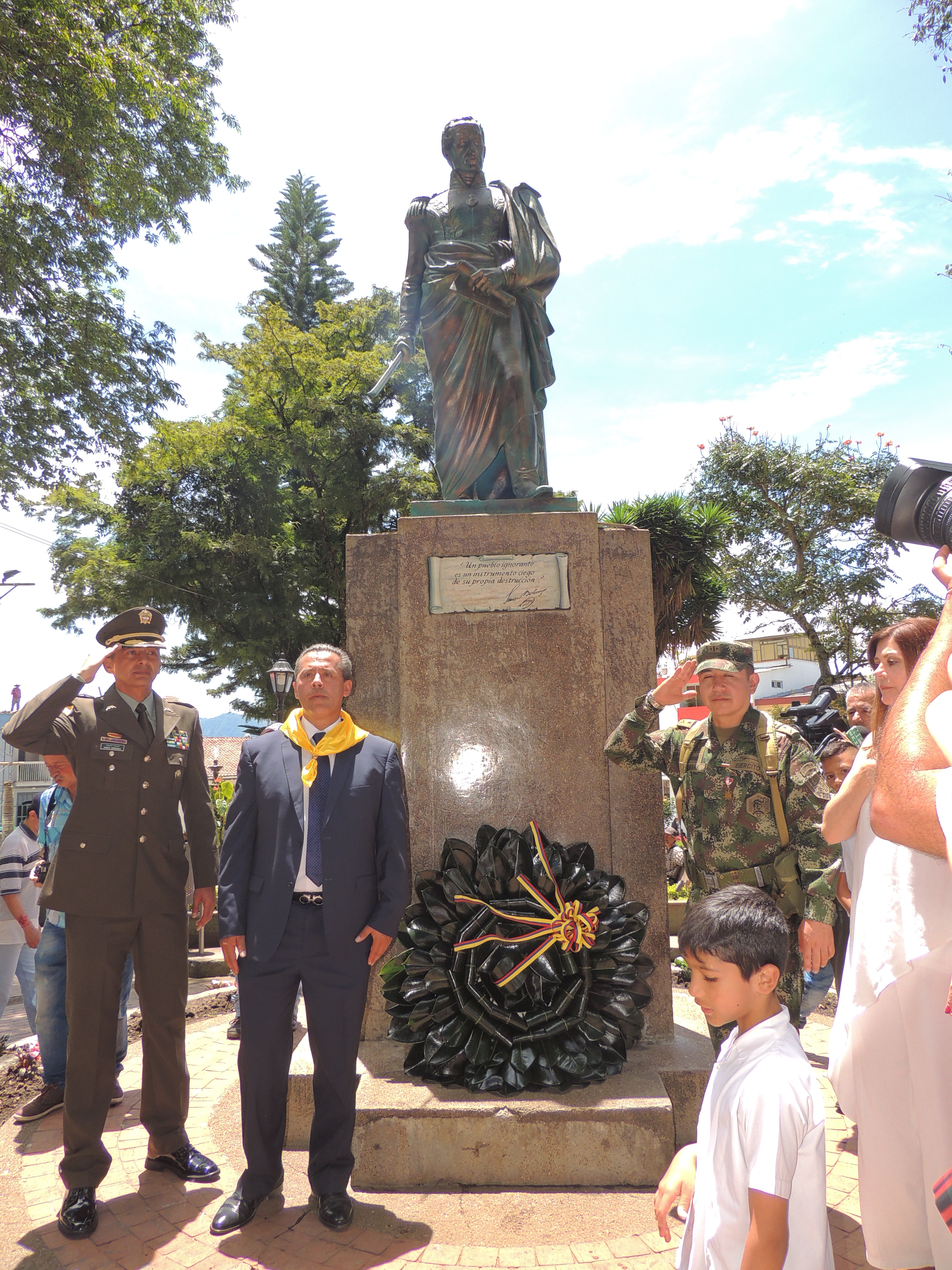 Al final la ofrenda floral ofrecida al libertador fue llevada en calle de honor por el alcalde , la primera dama, los comandantes de policía y del ejército nacional en medio de un fuerte calor que enmarco la celebración.