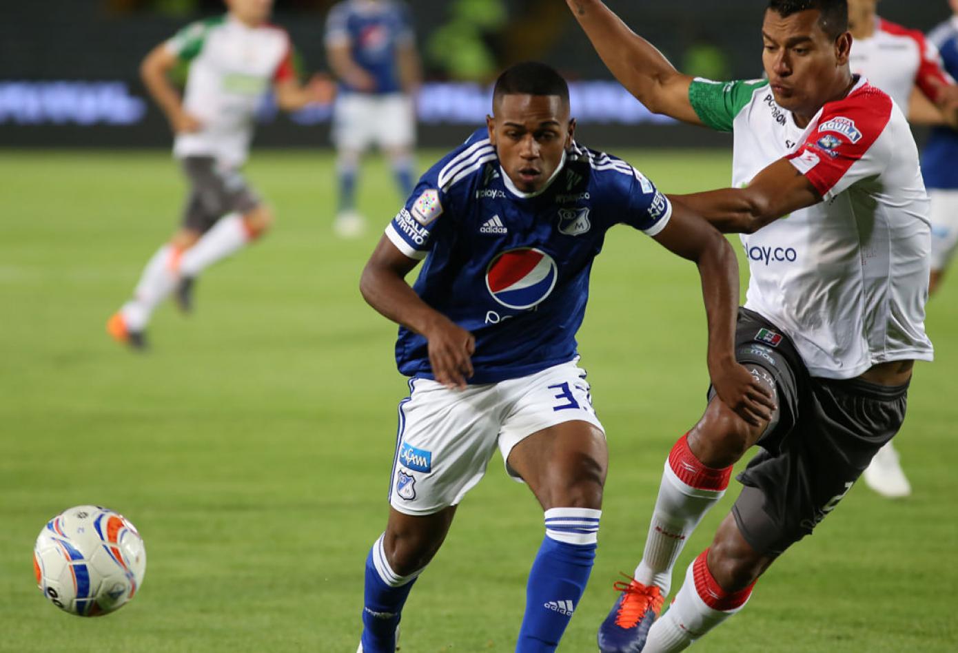 Millonarios comenzó ganando muy temprano cuando Macalister Silva lanzó un pase profundo para el jugador Barreto, quien se asoció con del Valle que se la devolvió después por el sector derecho y envió la pelota al centro del campo para que apareciera Salazar y de cabeza marcara el 1-0.