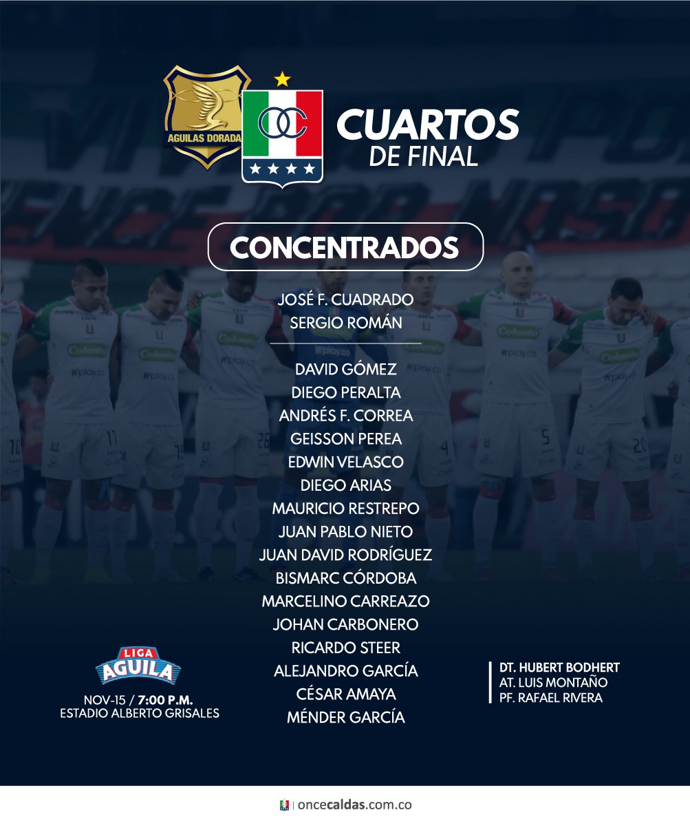 Rionegro Águilas enfrentará al Once Caldas, este jueves 15 de noviembre, en el juego de ida de los cuartos de final del Torneo Finalización de la Liga Colombiana.